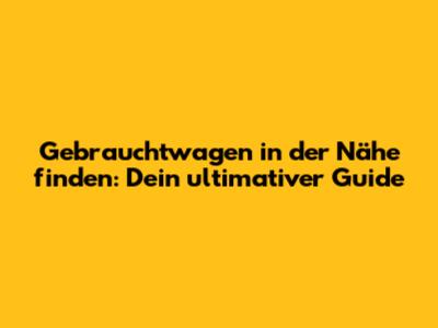 Gebrauchtwagen in der Nähe zu finden, ist heutzutage einfacher denn je. Dank des Internets und verschiedener Suchportale habt ihr eine riesige Auswahl direkt vor eurer Nase. Hier sind ein paar Tipps, wie ihr am besten vorgeht: