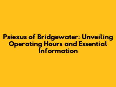 Q: How can I find the most up-to-date information on their hours? A: The most up-to-date information can usually be found on the Psiexus of Bridgewater official website or by calling them directly. Check their website's contact section for phone numbers and online resources.